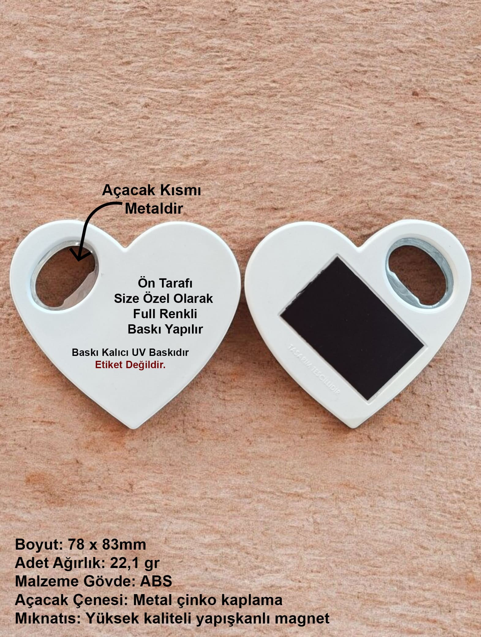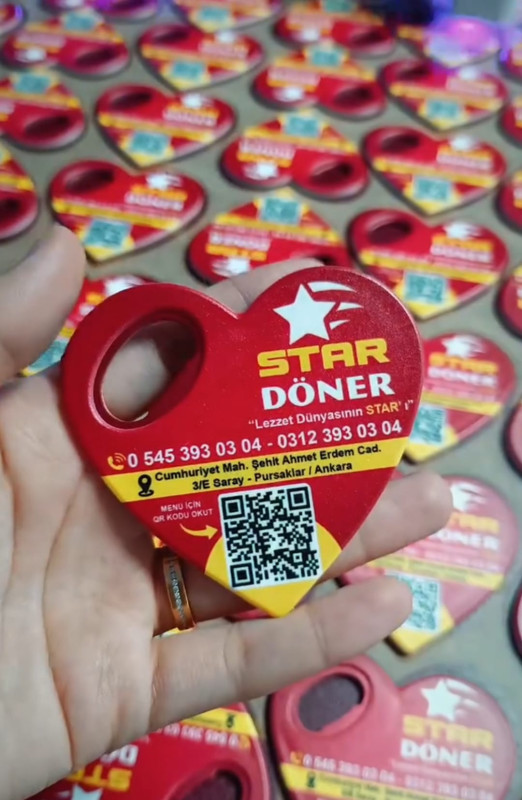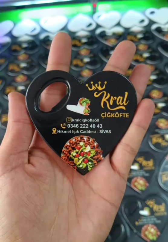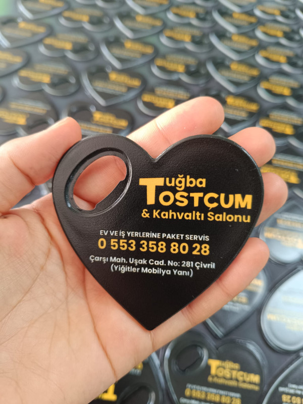 Kalp Şeklinde Şişe Açacaklı Promosyon Magnet, işletmenizin reklamını yaparken aynı zamanda müşterilerin günlük hayatında kullanabileceği işlevsel bir üründür.