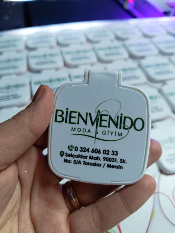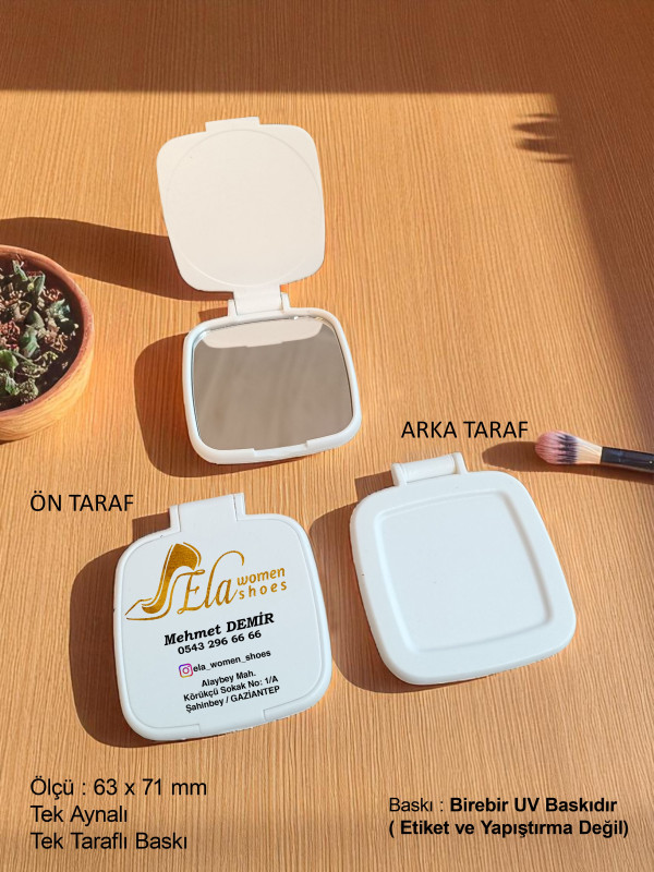 Kare model promosyon cep aynası, firmaların marka bilinirliğini artırmak için en çok tercih edilen promosyon ürünlerinden biridir. 63x71 mm ölçülerindeki bu şık ve kullanışlı cep aynası, ön kapak kısmına UV dijital baskı teknolojisi ile hazırlanır.