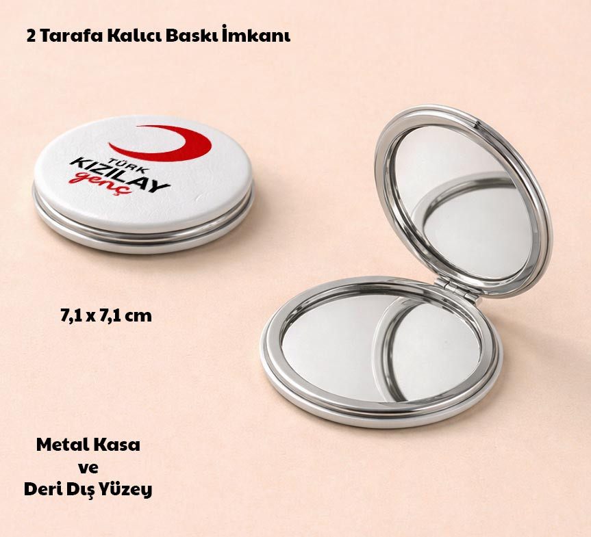 Çift aynalı cep aynası, müşterilerin günlük yaşamda kullanabileceği pratik bir ürün olarak markanızı sürekli görünür kılar ve etkili bir tanıtım aracı sunar.